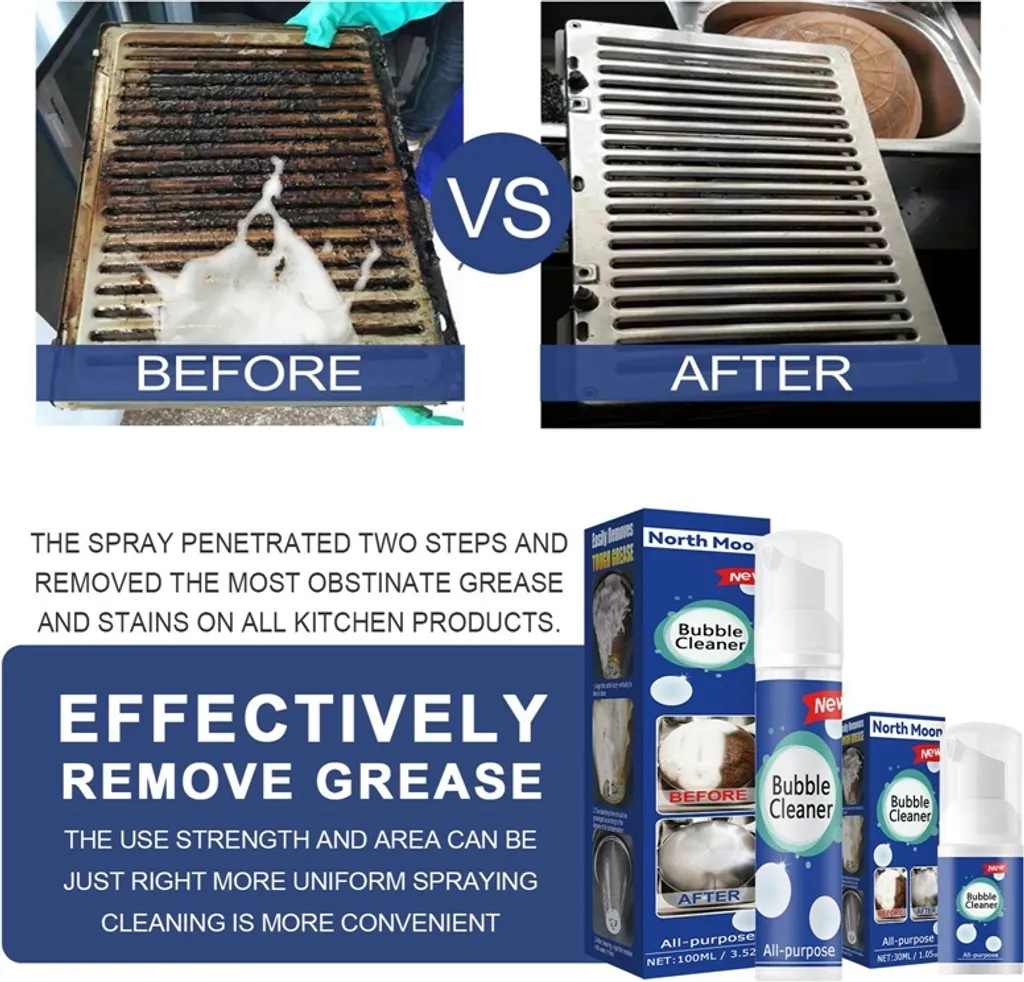 1. 【Schaum-Schwerölfleckenreiniger】: Kann effektiv gegen Küchenölflecken, Brandflecken, hartnäckigen Schmutz usw. kämpfen. Sprühschaumreiniger dringt in hartnäckiges Fett und Schmutz ein, sodass Sie in Sekundenschnelle saubere Küchenoberflächen und -geräte erhalten!