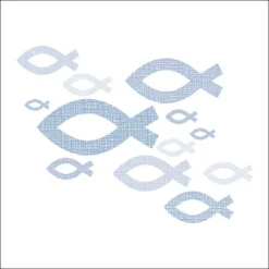 mit Christlichen Fischen in Blautönen auf weißem Untergrund