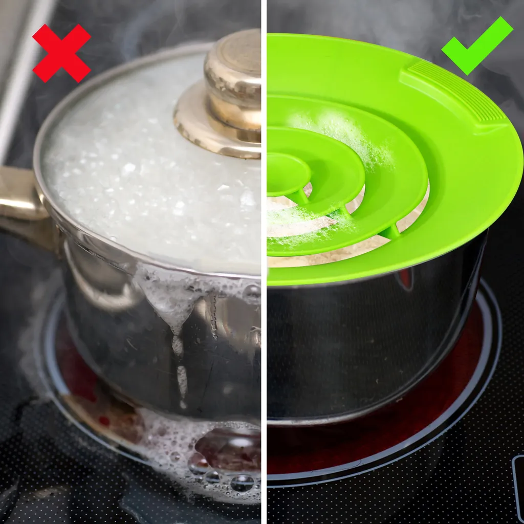 Der Silikonschutz schützt Ihren Herd vor Spritzwasser und überkochendem Wasser. Legen Sie einfach den Deckel auf Ihren Topf und das Wasser tritt nicht mehr aus dem Topf.