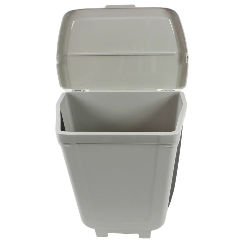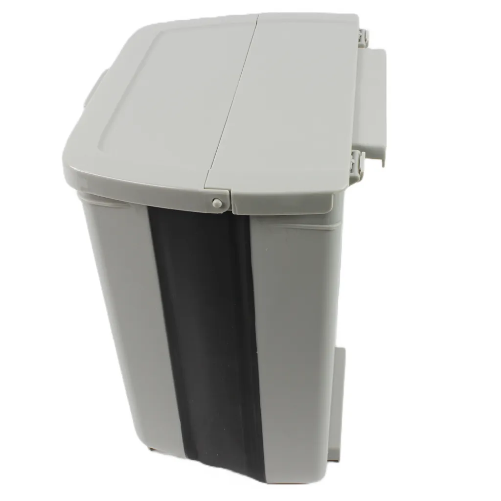 - ein aufsteckbarer Rahmen sorgt dafür, dass die Mülltüte fest fixiert wird und der ganze Mülleimer zusätzliche Stabilität bekommt