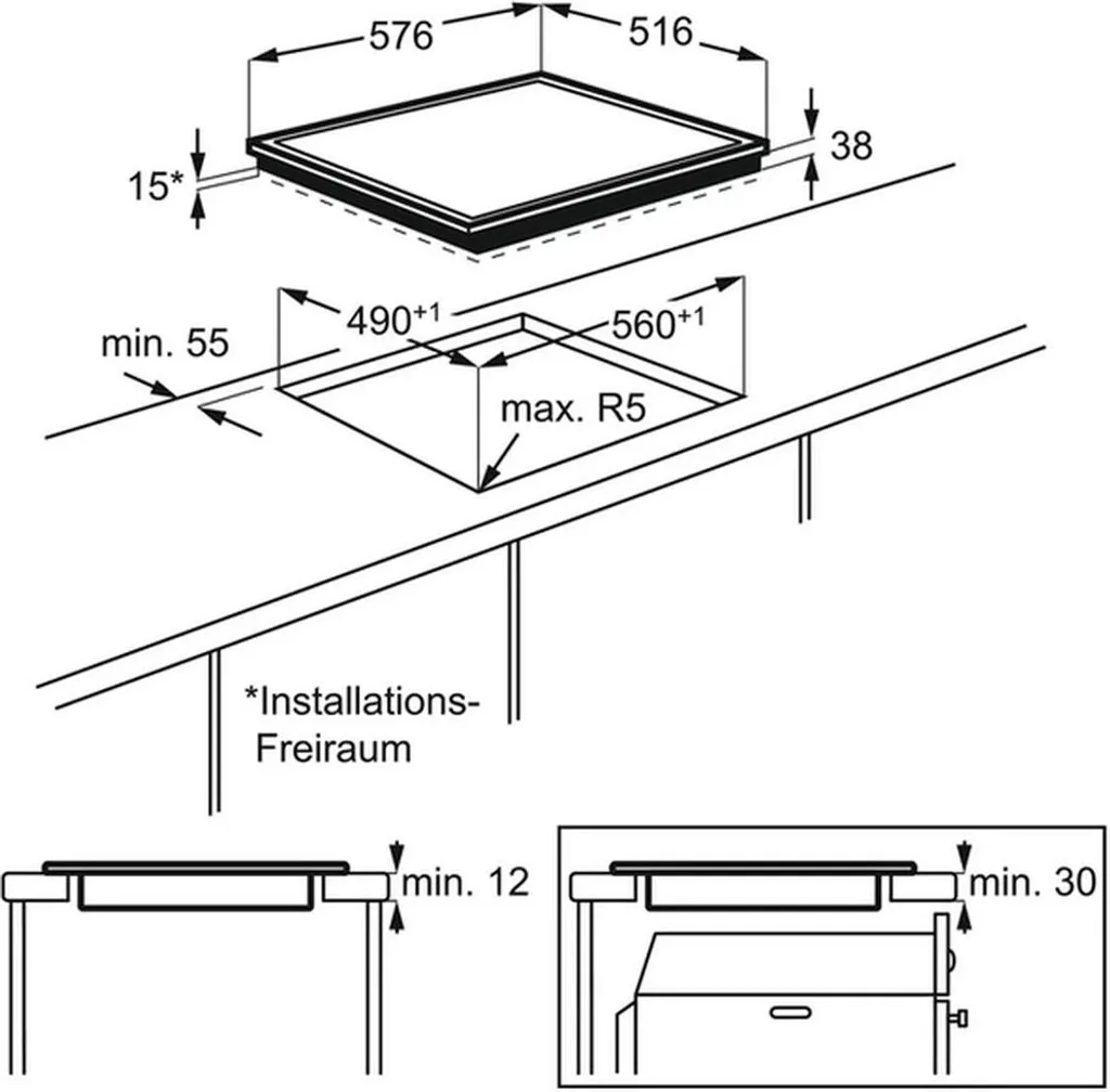 - Art des Kochfeldes: Strahlungsbeheizte Kochzonen