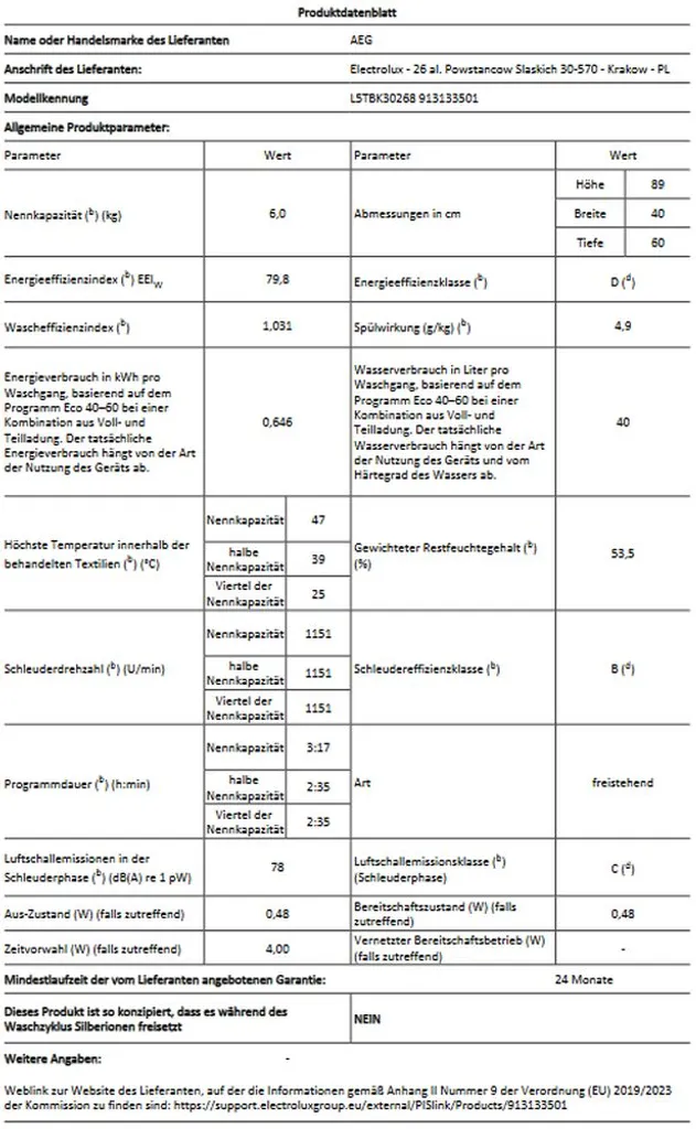 - Leistungsaufnahme bei Startzeitvorwahl (W): 4