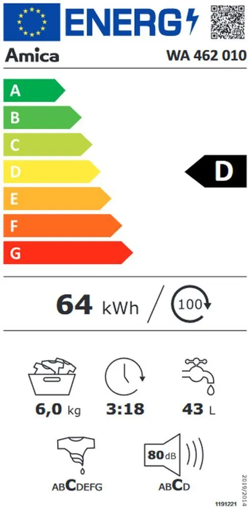 Energieverbrauch pro 100 Waschzyklen: 64,0 kWh