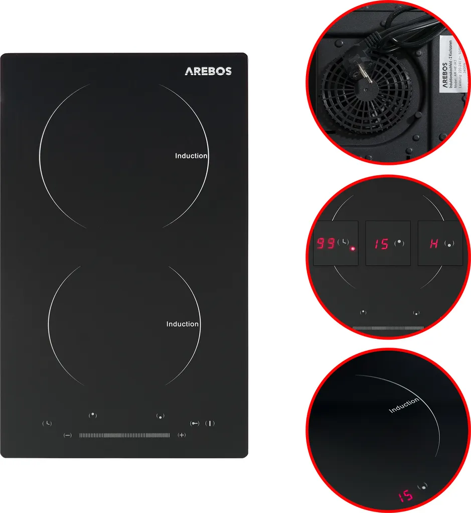 Mit dem modernen Kochfeld von AREBOS macht Kochen wieder Spaß. Die moderne Induktionstechnik sorgt für schnelles Erhitzen und spart bares Geld, da sie nur wenig Energie benötigt. Nach dem Kochen lässt sich die Kochstelle ebenfalls leicht reinigen.
