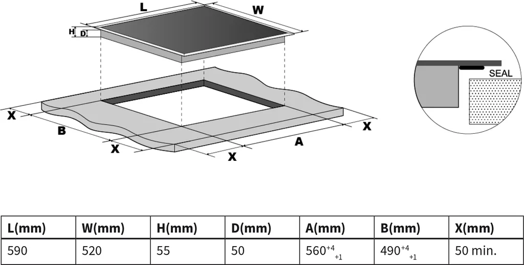 Falls eine Kochzone noch heiß ist, werden Sie von einer LED-Lampe davor gewarnt. Das Gerät ist mit einer Kindersicherung ausgestattet. Der fest montierte Slim-Designrahmen (Edelstahloptik) sieht nicht nur gut aus, sondern schützt ihr Kochfeld auch vor Beschädigungen an den Kanten. Die Breite des Kochfelds beträgt 59cm.