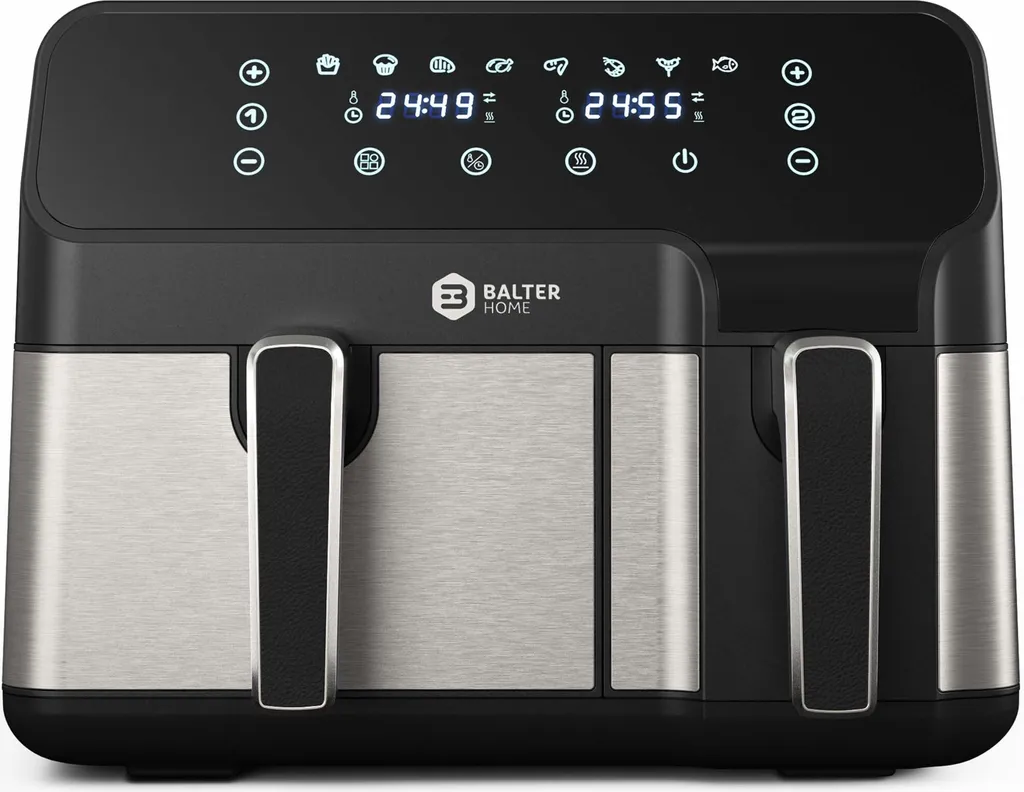 Die Balter Heißluftfritteuse HL-850D bietet Flexibilität durch zwei Garkörbe mit unterschiedlichem Fassungsvermögen von 5,5L und 3,5L.