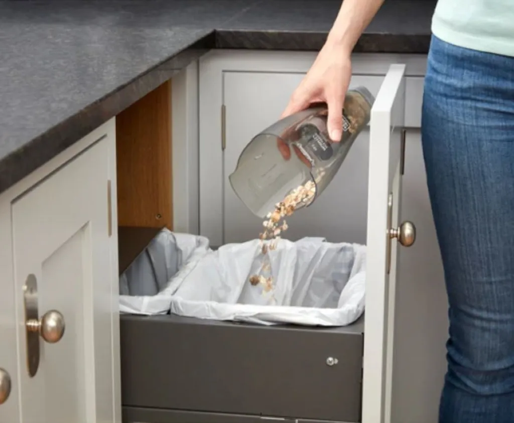 - Schmutzfangbehälter: Lässt sich auf Knopfdruck einfach entfernen und ist spülmaschinenfest.