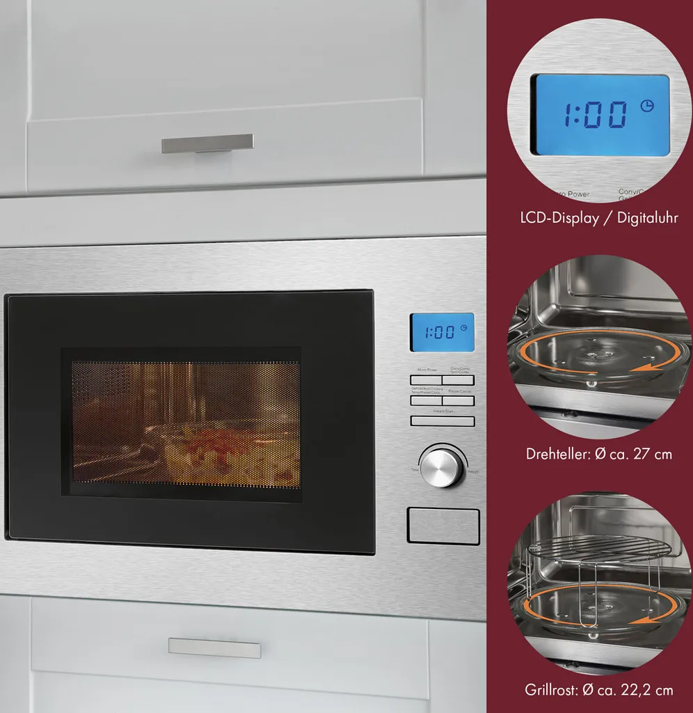 - Die Bomann 3in1 Einbaumikrowelle mit Grill und Heißluft eignet sich perfekt zum Grillen, Auftauen und Erwärmen von verschiedenen Speisen