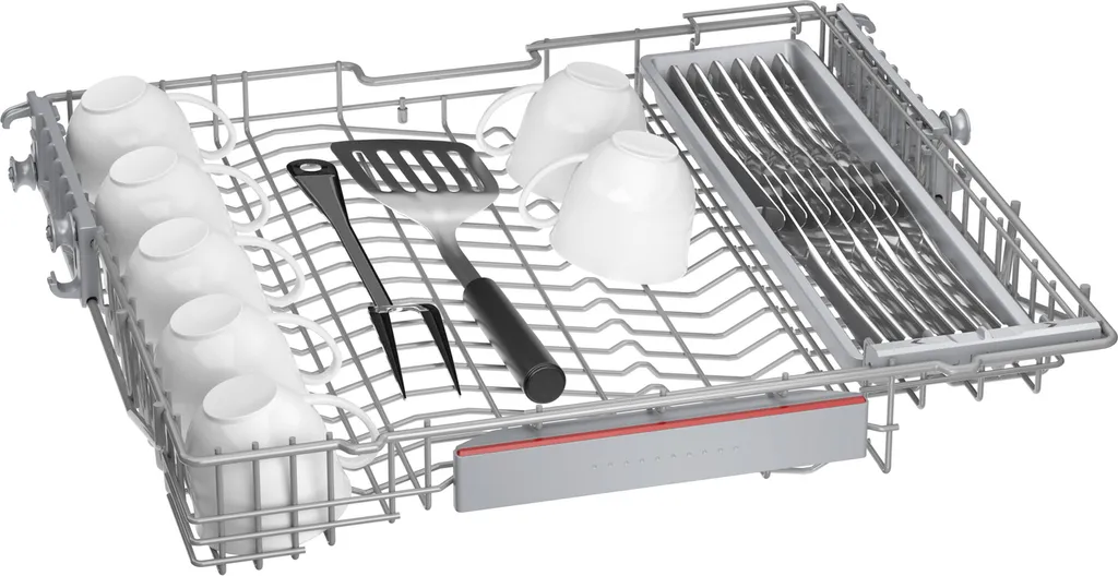 Der Oberkorb ist durch die 3-fach Rackmatik mit einem Griff um insgesamt 5 cm dreistufig höhenverstellbar. Und das sogar voll beladen. Ob Pizzateller oder langstielige Gläser – für hohes Spülgut wird so ganz flexibel oben oder unten noch mehr Platz geschaffen.