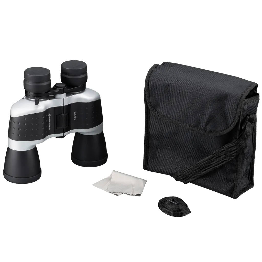 Das formschöne BRESSER Topas 8-24×50 ist ein bewährtes Fernglas in Porro-Prismenbauweise mit voll vergüteter Optik. Die leistungsstarke, variable Vergrößerung ermöglicht es, das Topas 8-24×40 als Zoom-Fernglas für die unterschiedlichsten Einsatzgebiete zu nutzen. Die Vergrößerung kann bequem auch während der Benutzung durch einen Hebel verändert werden. Ein Dioptrienausgleich ist bei diesem praktischen Fernglas selbstverständlich und durch die umstülpbaren Augenmuscheln ist es bestens für Brillenträger geeignet. Die partielle Gummiarmierung sorgt für sicheren Halt und durch die Mitteltriebfokussierung ist es einfach zu bedienen. Ein praktisches Gewinde für einen Stativadapter ist integriert, um bei längeren Beobachtungen Ermüdungserscheinungen vorzubeugen und bei hoher Vergrößerung ein ruckelfreies Bild zu erhalten.