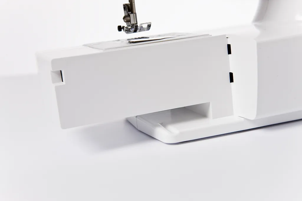 Bis hin zur Verwandlung in ein Freiarm-Modell, um einfach durch Abziehen des Zubehörfachs Spielraum für die Herstellung rundgeschlossener Teile oder das Aufnähen von Taschen zu erhalten.