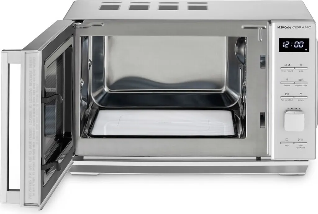 Caso M 20 Cube Ceramic Mikrowelle 20L 800W LED-Display Elektronik-Uhr Keramikboden mit Mikrowellenreflektor 10 einstellbare Leistungsstufen 8 Automatik-Programme Auftau-Programm Edelstahl-Innenraum Kindersicherung