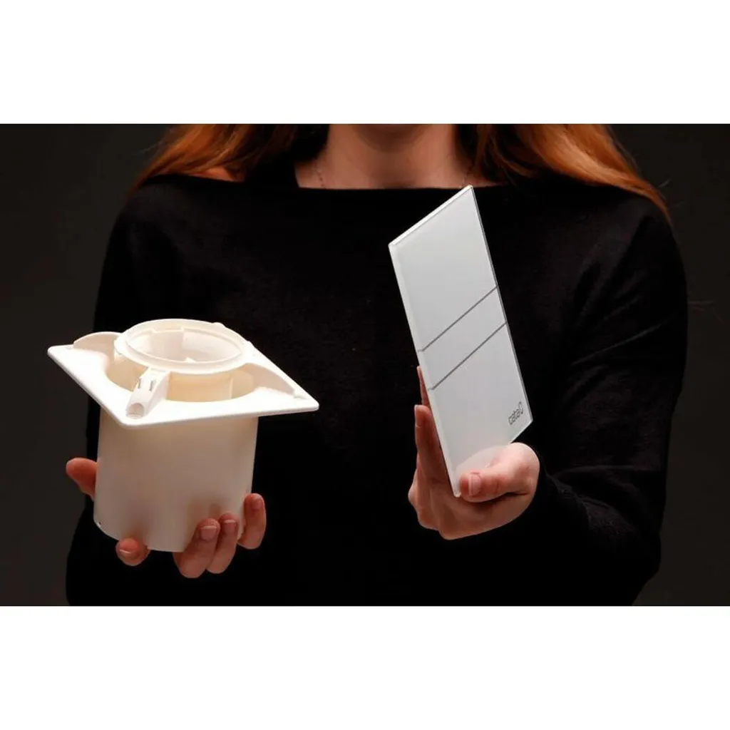 Die neue E GTH Reihe von Extraktoren hat mit dem Wunsch, einen neuen Standard im Markt setzen und kombiniert Effizienz und Eleganz Extraktionseinheiten mit hoher Energieeinsparung, Entzugsleistung, Haltbarkeit und Stille bieten erstellt. E GTH Hygro Einstellbare Feuchtigkeitssensor zwischen 40% und 90%. Einstellbare elektronische Schaltuhr zwischen 0 und 15 Minuten. 2 Geschwindigkeiten. Temperatur und relative Feuchte Indikator. Einfach zu entfernen und reinigen Mit einem einzigen Tool, mit dem Extraktor zugeführt wird, in nur wenigen Sekunden können Sie leicht entfernen Sie die Glasfront nur, indem Sie ein feuchtes Tuch über sie, um sie zu reinigen. Das gleiche Tool können Sie den Timer und die Feuchtigkeitsregler anpassen. E GTH ist mit einem 2-Gang-Motor ausgestattet: 1. Gang: einstellbar zwischen zwei Extraktionsstufen vor der Installation. 2. Gang: auf das Licht wird ein und auf die Aktivierung des Feuchtigkeitsregler oder den Timer aktiviert.