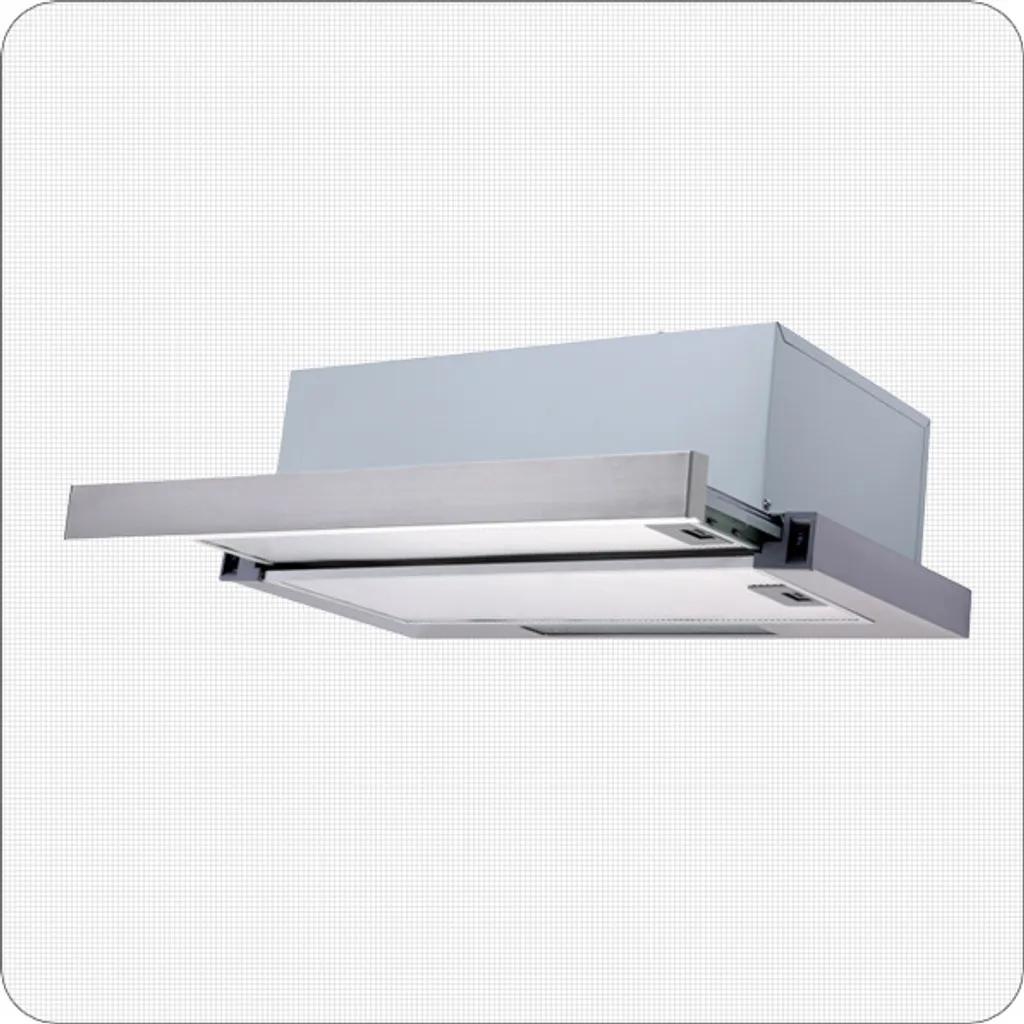 Diese schöne Einbau-Dunstabzugshaube mit Edelstahlblende ist ausziehbar und verfügt über 2 Leistungsstufen.