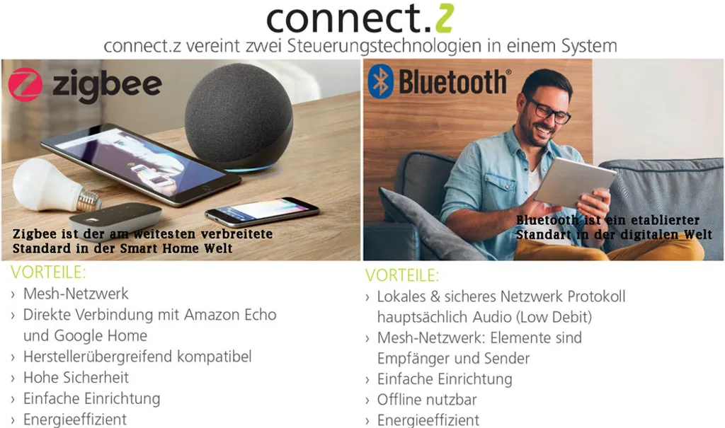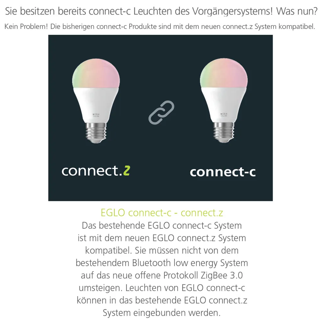 Z ist aus amberfarbenem Glas mit spiralförmigen LEDs gefertigt. Die LED-Glühbirne spendet angenehmes Licht ganz nach Ihren Wünschen. Sie haben die Wahl zwischen warmweißem, neutralweißem und kaltweißem Licht. Die Steuerung der Lampe erfolgt via er App und ermöglicht Ihnen den Zugriff auf weitere Komfortfunktionen wie Dimmen, Timer, Anwesenheitssimulation und vielen mehr. Die Ansteuerung des Leuchtmittels erfolgt über Bluetooth sowie ZigBee 3.0 und ermöglicht zudem die Steuerung über kompatible Sprachassistenten. Mit Hilfe der separat erhältlichen Bridge ist es Ihnen möglich auch smarte ZigBee 3.0 Leuchten anderer Hersteller in das System zu integrieren (Bitte prüfen Sie hierzu die technische Anforderung des jeweiligen Produkts). Zusätzlich lässt sich das smarte Vintage-Leuchtmittel auch über die separat erhältliche Fernbedienung steuern. Der Tausch Ihrer herkömmlichen Leuchtmittel durch EGLO connect.Z