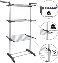 BIGTREE Wäschespinne,Wäscheschirm Mit Leineneinzug, Höhenverstellbar, 40m/50m Wäscheleine(Stahl-L)