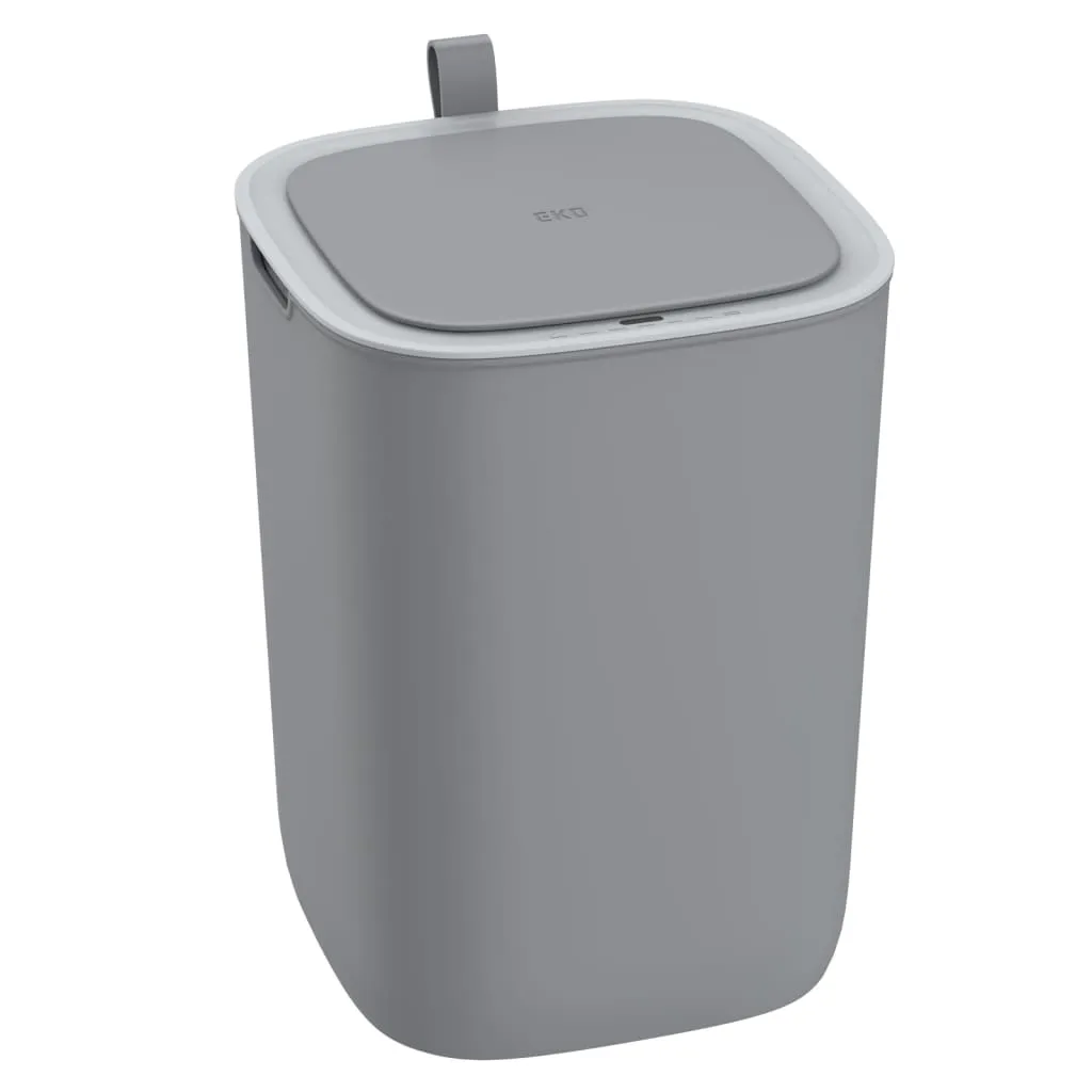 Dieser graue 12 L Morandi Smart Sensor-Mülleimer von EKO ist ein trendiger quadratischer Kunststoff-Abfalleimer mit Sensor und Berührungsschalter.