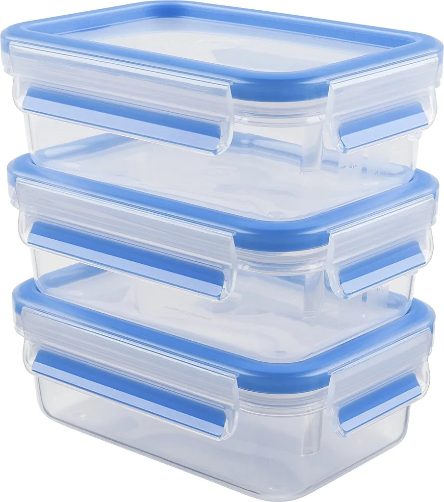 EMSA Clip & Close Frischhaltedosen, 0,55 l, blau/transparent (3er Pack)