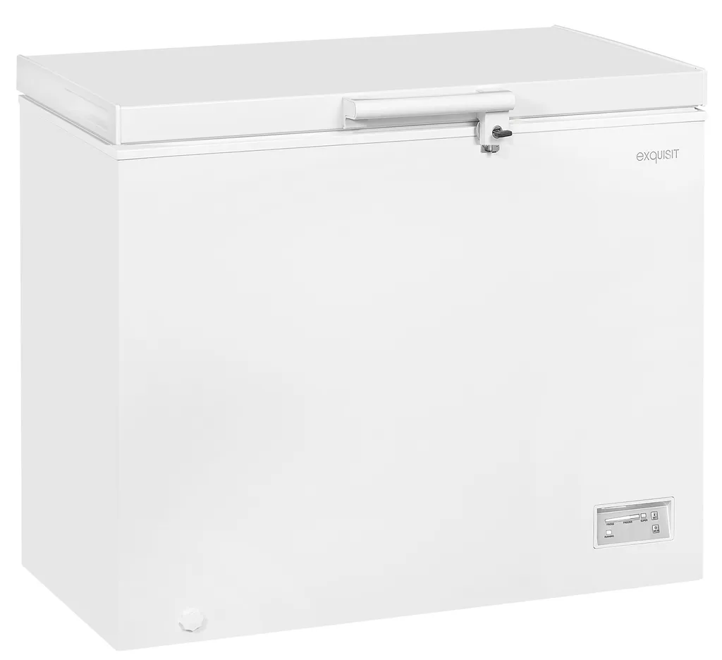 Die Gefriertruhe ermöglicht Ihnen das sorgenfreie Lagern über einen längeren Zeitraum. Insgesamt stehen Ihnen 254 l Nutzinhalt zur Verfügung. Das Gerät in der Farbe Weiß hat die Abmaße 85,0 x 96,0 x 70,5 cm (Höhe/Breite/Tiefe) und hat die Energieeffizienzklasse E (Skala Energieeffizienzklasse A bis G). Durch seine freistehende Bauart lässt es sich an jedem Ort aufstellen und in Betrieb genommen werden. Der 4*-Gefrierbereich verfügt über eine Kapazität von 254,0 l und bietet den idealen Ort für Eis, Tiefkühlpizza und alles andere. Eine spezielle Schnell-Gefrierfunktion sorgt dafür, dass Ihre Lebensmittel in kürzester Zeit eingefroren werden. Über ein gut lesbares Display haben Sie die gewünschte Temperatur jederzeit im Blick und können bequem einzelne Funktionen des Gerätes steuern.