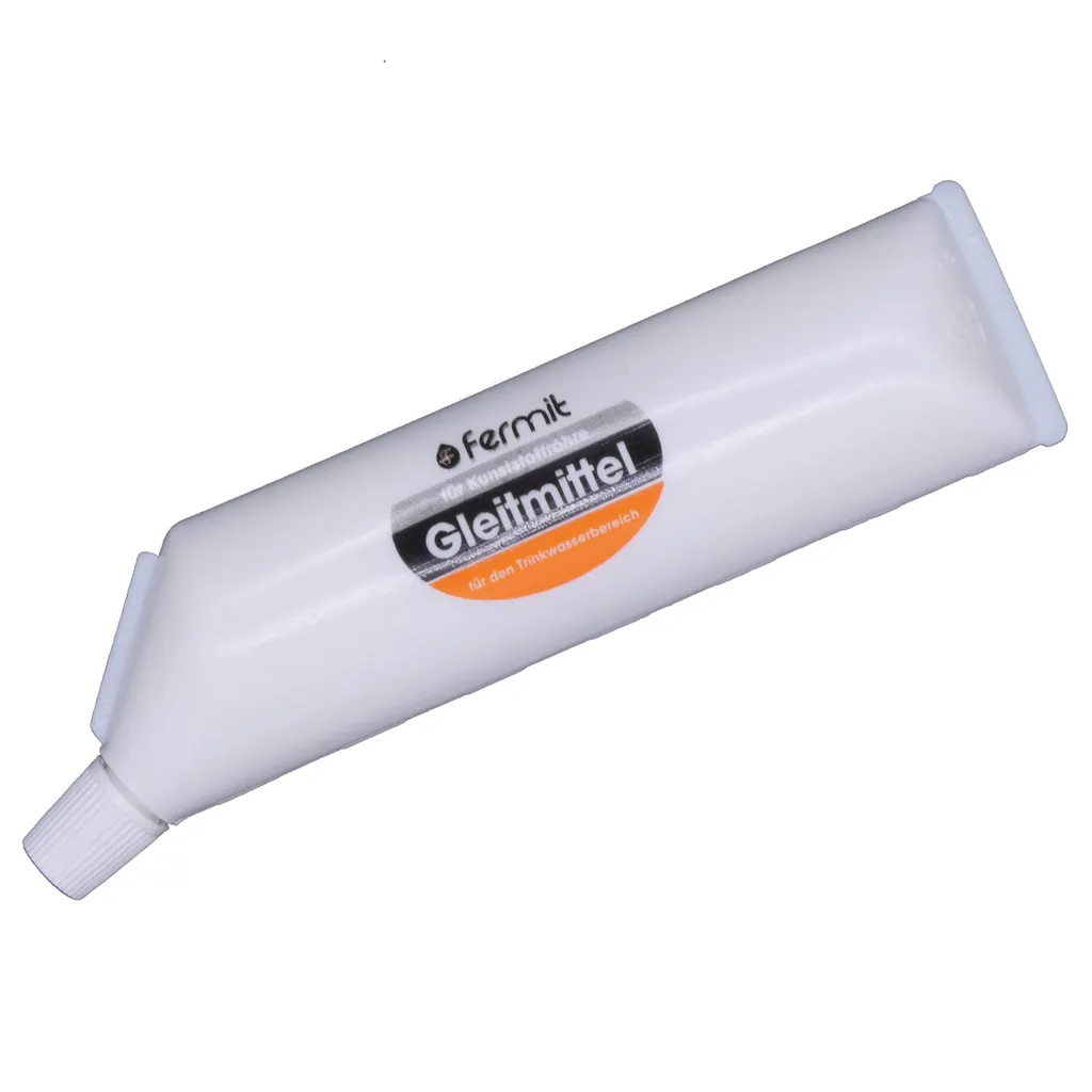 Fermit Gleitmittel Gleitmittel für Kunststoffrohre auf synthetischer Basis Fermit Gleitmittel Anwendung im Sanitärbereich und im Tiefbau Verarbeitungstemperatur: -5°C bis +40°C Lagerung: +5°C bis +25°C Farbe: weiß Entspricht den Richtlinien des TZW Karlsruhe, des DVGW sowie des WRAS. wassermischbar trinkwassergeeignet für alle Durchmesser sehr gute Schmier- und Gleiteigenschaften hautverträglich