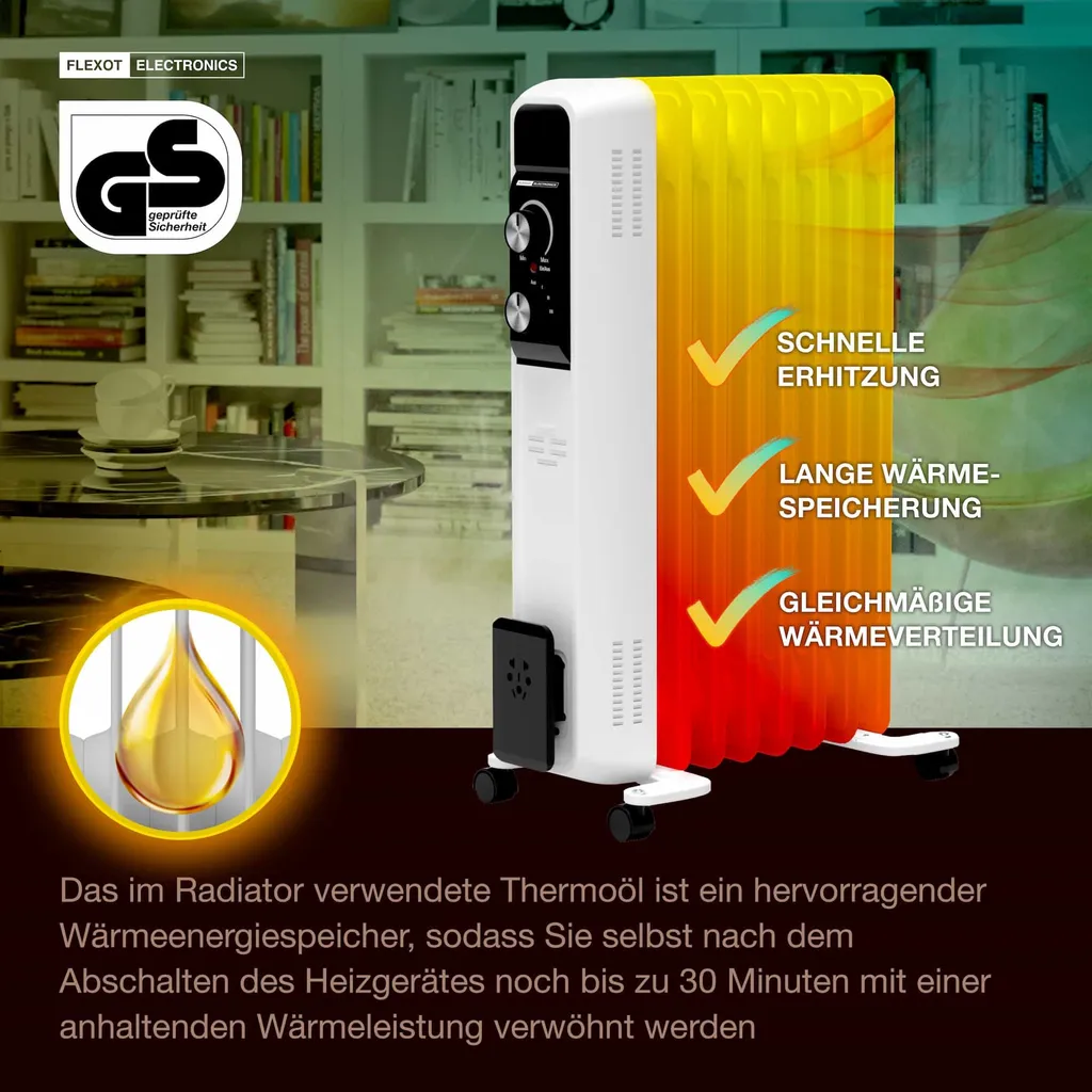 ÖLRADIATOR ELEKTROHEIZUNG HEIZER HEATER 7 RIPPEN 1500W 3 LEISTUNGSSTUFEN HEIZUNG