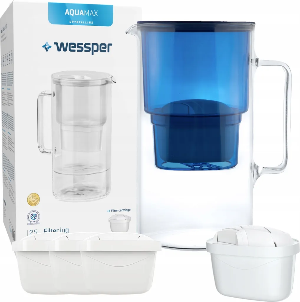 Wessper Glaskanne Crystaline 2.5L mit 3 Wessper AquaMax Filter