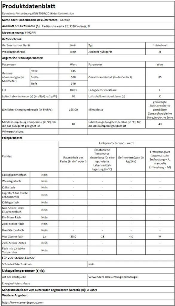 Gorenje F492PW – Gefrierschrank – Gefrierschrank – Breite: 56 cm – Tiefe: 57.9 cm – Höhe: 84.5 cm – 85 Liter –