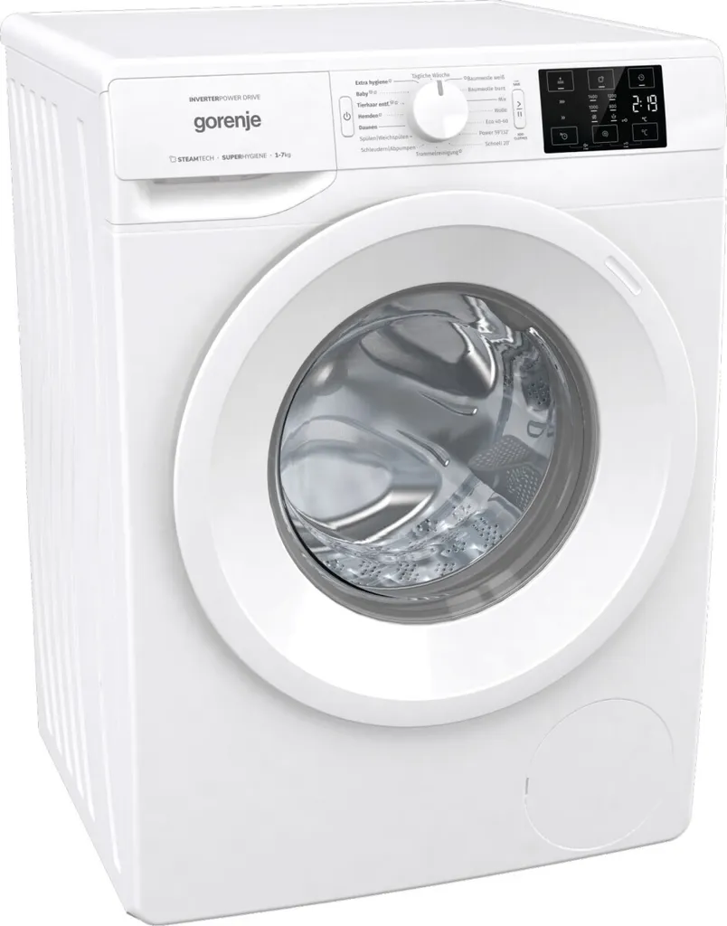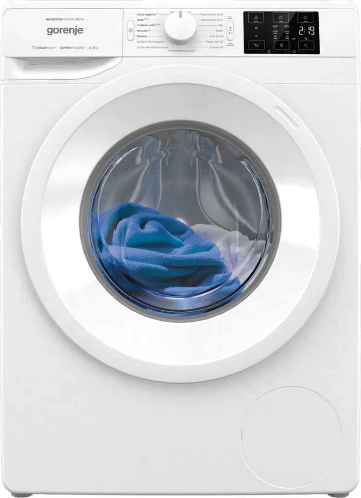 Gorenje Essential WNEI74ADPS – Waschmaschine – Breite: 60 cm – Tiefe: 54.5 cm – Höhe: 85 cm – Frontlader – 54 Liter – 7 kg – 1400 rpm – weiß
