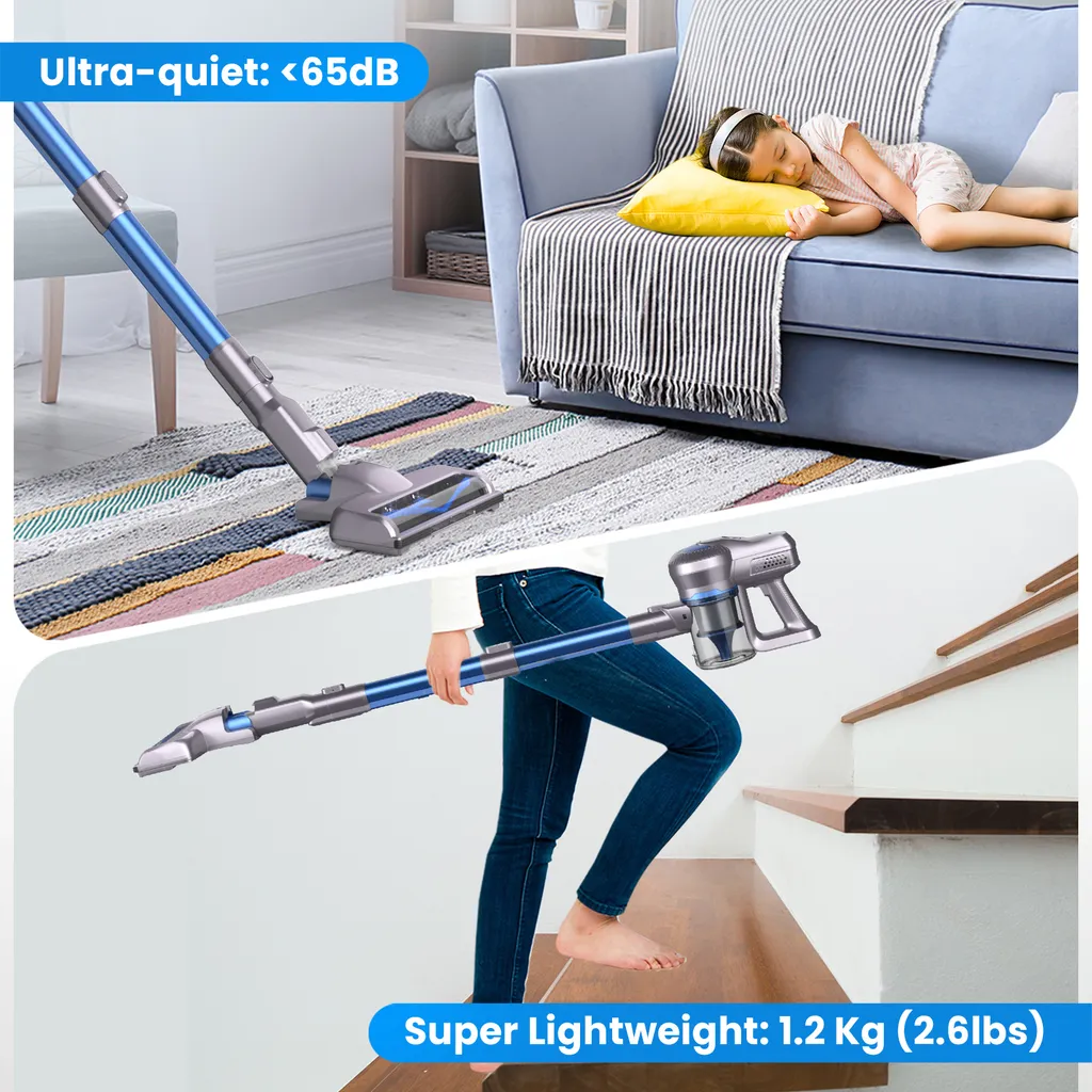 【Sehr Leicht und Leise】 Die Hausarbeit ist eine undankbare, nicht enden wollende Aufgabe. Das Gewicht dieses kabellosen Staubsaugers beträgt nur 2,64 lbs, das Betriebsgeräusch ist <65 dB, um die Haushaltsreinigung zu vereinfachen, auch die langen Stunden der Hausarbeit nicht ermüden, nicht stören die Familie.