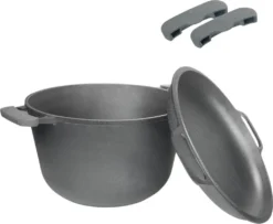 Der Gusseisen Topf ist Multifunktional und vielseitig benutzbar für Indoor und Outdoor. Ob über dem Lagerfeuer, auf dem Gas-, Elektro- & Induktionsherd oder im Backofen – unser Gusseisen Topf mit Deckel ist eine perfekte Entscheidung für Camping, Gartengrill, Lagerfeuerparty und auch für Zuhause.