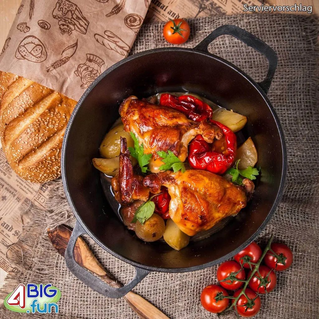 Kochen ist eine Leidenschaft, egal ob klassische Hausmannskost oder neue ungewöhnliche Gerichte. Unser Gusseisen Topf wird zu Ihrem unverzichtbaren Helfer in der Küche. Der Topf eignet sich perfekt zum Braten, Kochen, Garen, Schmoren, Frittieren und sogar Backen. Im Kochtopf aus Gusseisen gelingen so kinderleicht Gerichte wie Pilav, Gulasch oder Eintopf. Der gusseiserne Kochtopf ist auch ideal für Aufläufe oder selbstgebackenes Brot.