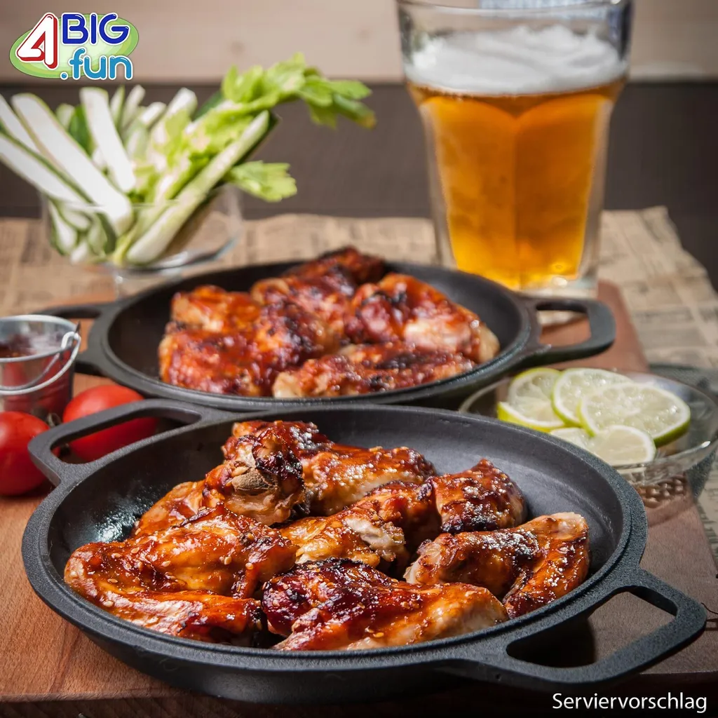 Der Deckel-Bratpfanne kann als Bratpfanne, Grillplatte für gegrilltes Fleisch, Fisch oder Gemüse, oder einfach als Servierteller verwendet werden.