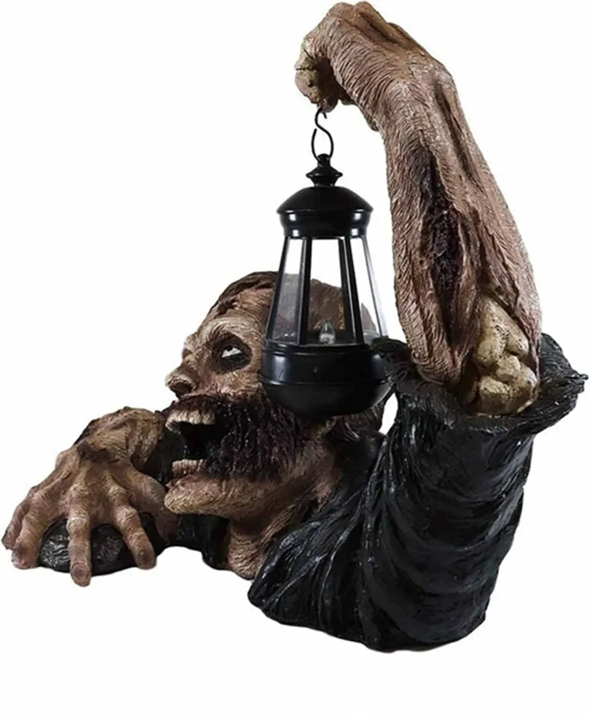 Diese handgehaltene Zombie-Laternenstatue verwendet Harztechnologie und ist 21 x 17 x 9 cm groß.