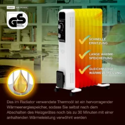 Ölradiator Elektro Heizung 1500W – 6 Rippen – Lamellen Heizkörper Radiator Öl Heizer Elektrisch
