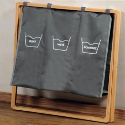 KESPER Wäschesammler Mit Dreifacher Einteilung, Trio, Grau Mit Bambusrahmen 69 X 38x 57 Cm 19597