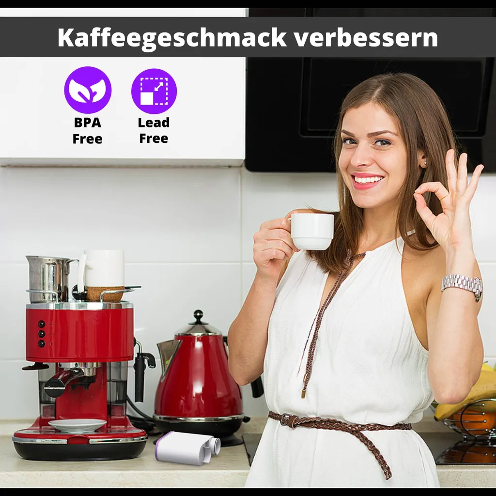 Der Filter enthält hochwertige Aktivkohle, die das Kalziumkarbonat stabilisiert und Verunreinigungen wie Chlor und Kalkablagerungen entfernt und den Geschmack des Kaffees verbessert.