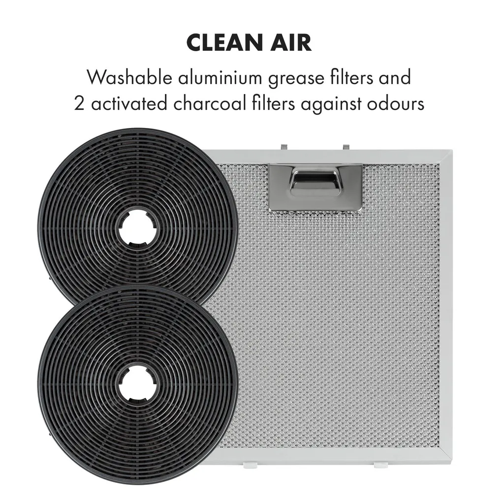 – Saubere Luft: abwaschbarer Aluminium-Fettfilter und 2 Aktivkohlefiltern gegen