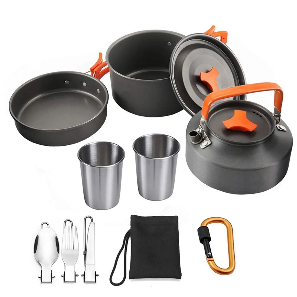 【 Einfach zu transportieren 】:Die ganze Kochset ist sehr leicht und Platzsparend in einander verpackt. Faltbare Griffe am Topf oder Ofen können platzsparend zusammengeklappt werden. Klein und handlich, können alle Objekte in diesem Kochset zusammen in einem Netzbeutel für bequemes Tragen aufbewahrt werden.