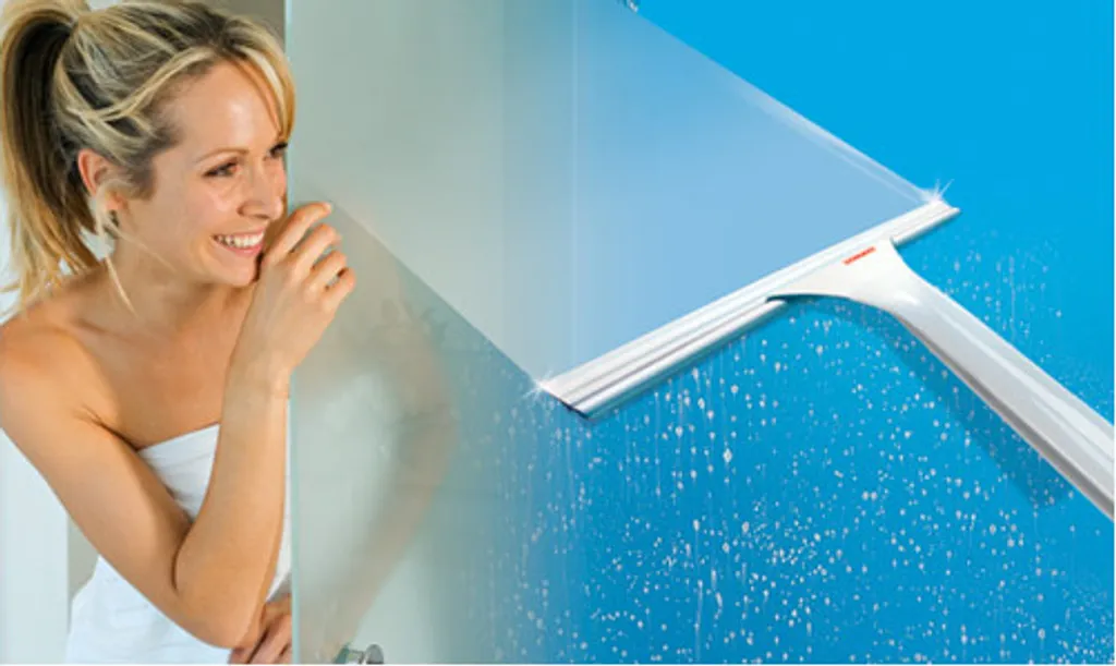 Werden Duschwände aus Glas, Acryl und auch die Fliesen gleich nach dem Duschen getrocknet, bilden sich keine hässlichen Kalkflecken, keine Stockflecken und kein Schimmel. Die mühevolle Entfernung, der Kalkflecken auf Glas, Acryl und Kacheln entfällt bei der Hausarbeit. Es geht viel schneller, sofort den Duschwischer von Leifheit zu benutzen, als später jeden einzelnen Kalkfleck herauszupolieren. Außerdem sparen Sie mit dem Duschabzieher Putzmittel, um Kalkflecken zu entfernen.