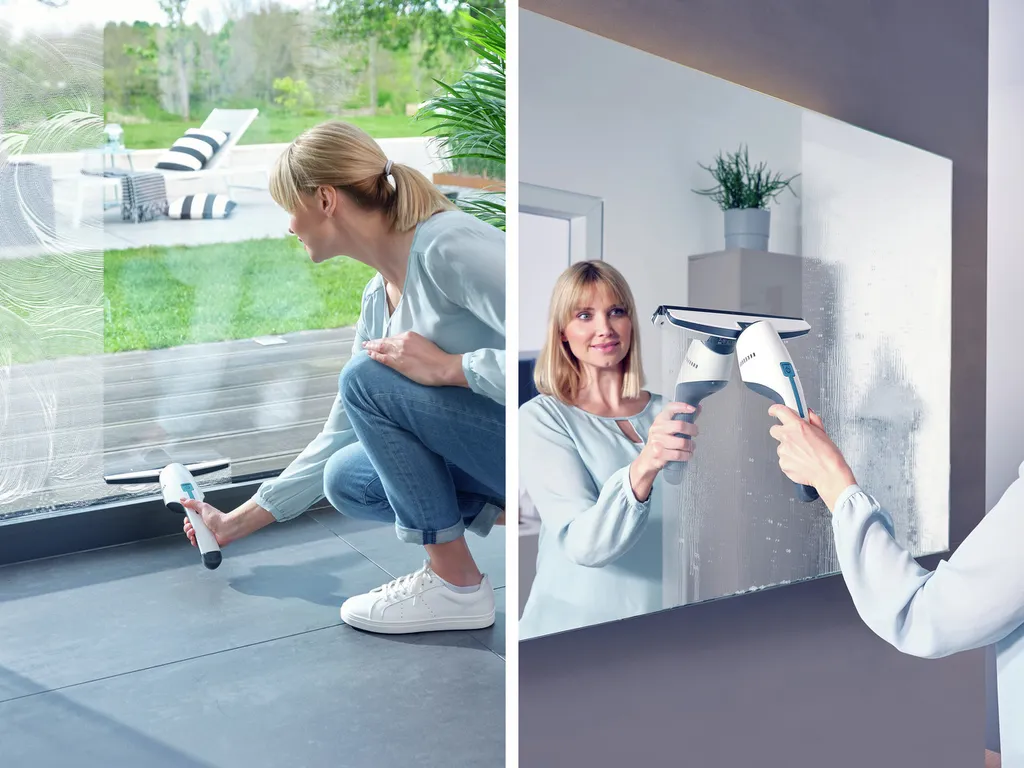 - Besonders handliche und schmale Form: Im Griff integrierter Tank ermöglicht das Absaugen in einem Zug bis zum unteren Fensterrand