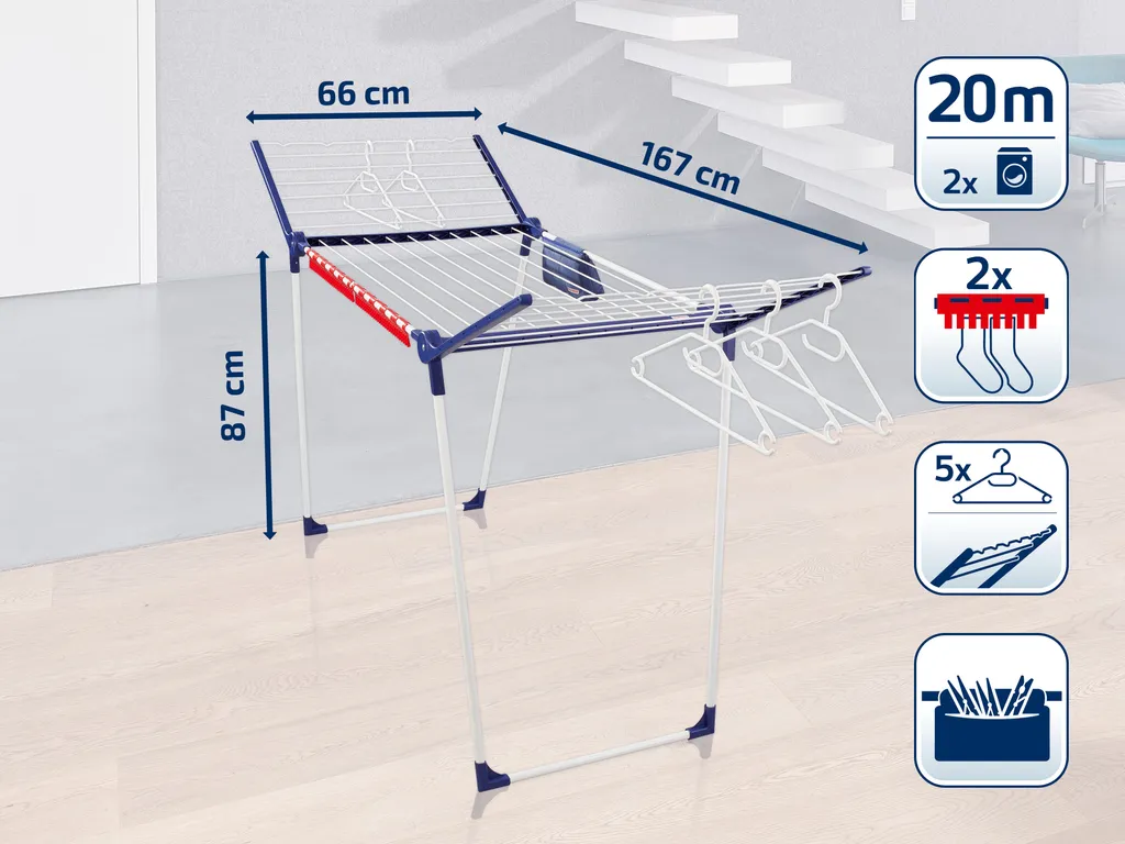 - Mit Flügeln zum Trocknen langer Wäschestücke