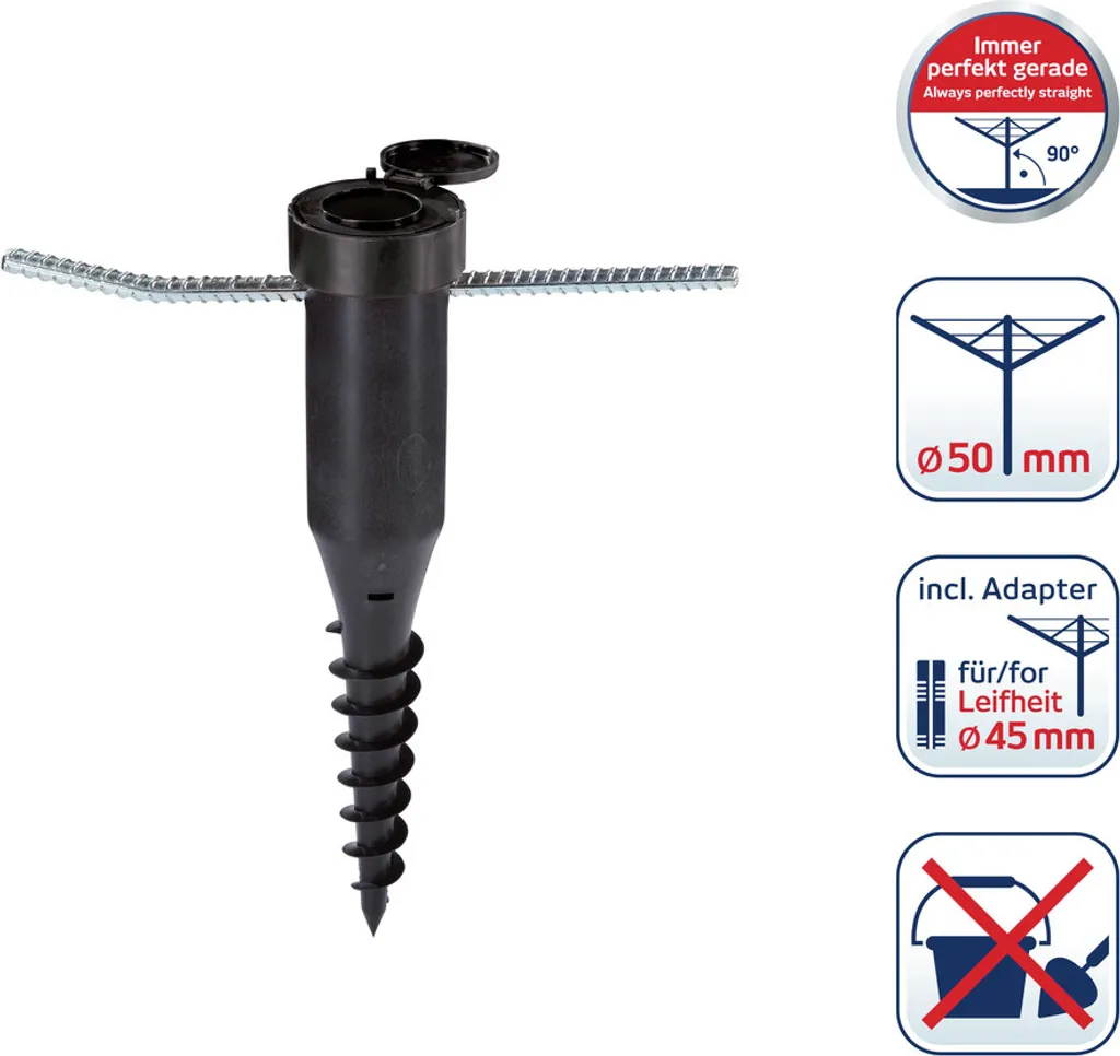 - Inklusive Distanzhülse für Leifheit Wäscheschirme mit einem Standrohr-Ø von 45 mm