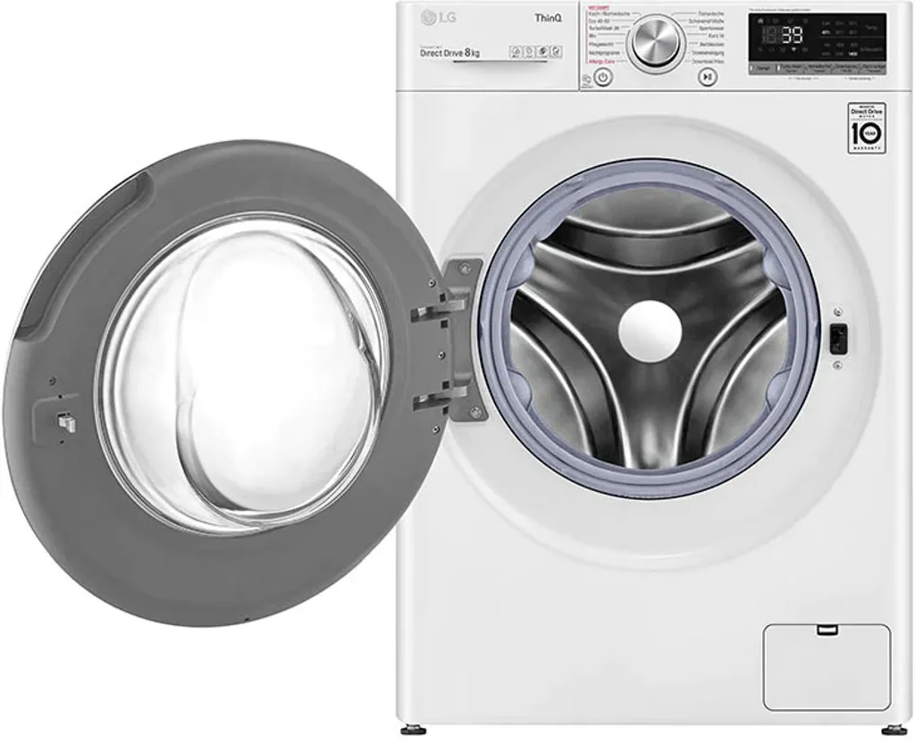 - 8 kg – für die Wäsche von Großfamilien bis 5 Personen Steam™ – Tiefenreinigung durch Dampf mit speziellen Programmen Smart ThinQ™- Starten, Stoppen, neue Programme installieren oder Fehlerdiagnosen abrufen per App TurboWash™ 360° – Saubere Wäsche in nur 39 Min.