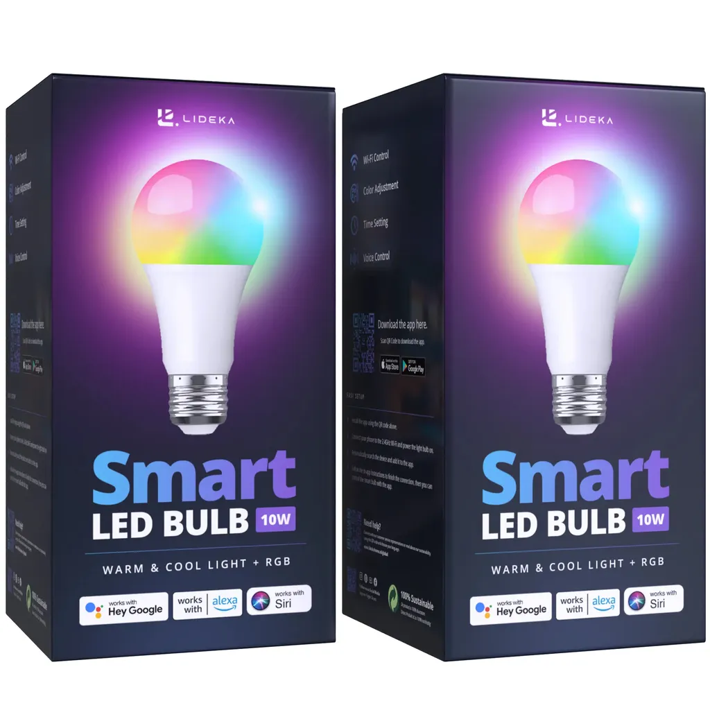 Suchen Sie hochwertige LED-Lampen für Ihr Zuhause? Dann ist dieses ultimative LED-Lampenpaket speziell für Sie gemacht! Das Paket enthält 2er-Set – 10 W E27 Smart LED-Lampen, die Sie in Ihrem Zuhause installieren können. Verbinden Sie sie einfach mit Ihren Smartphones und steuern Sie sie gleichzeitig.