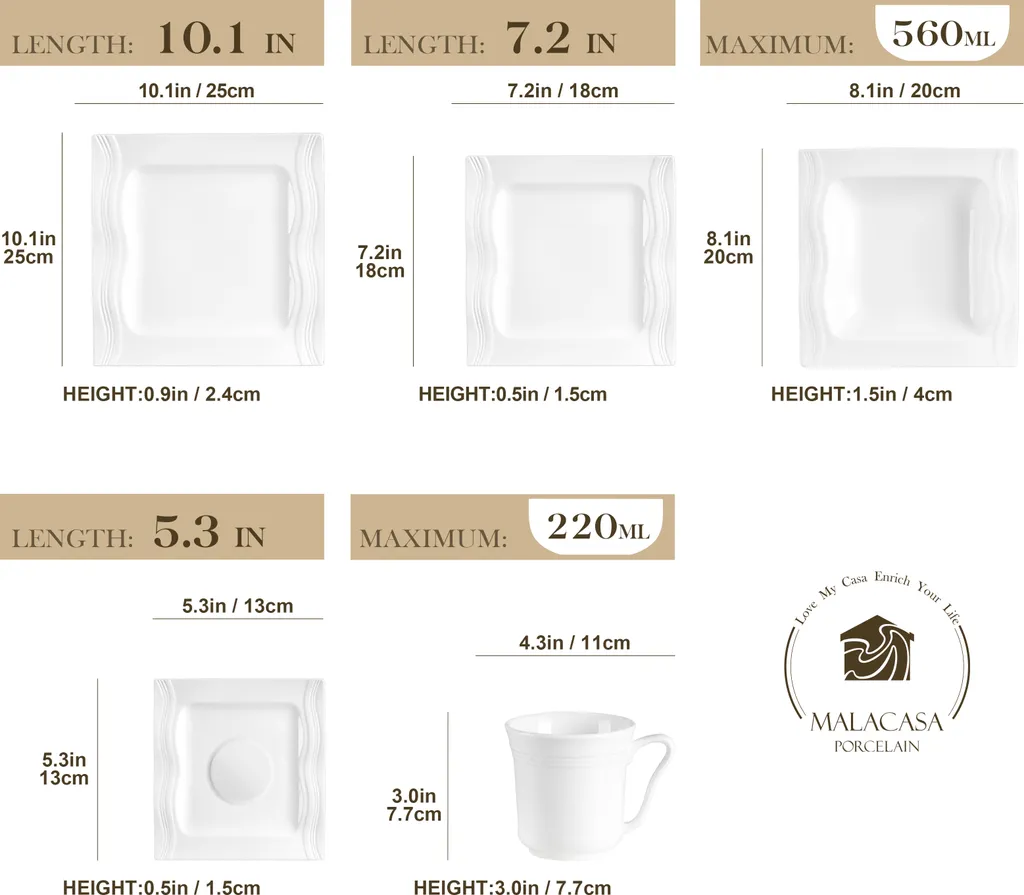 Malacasa, Serie Mario, 60 teilig Set Porzellan Tafelservice