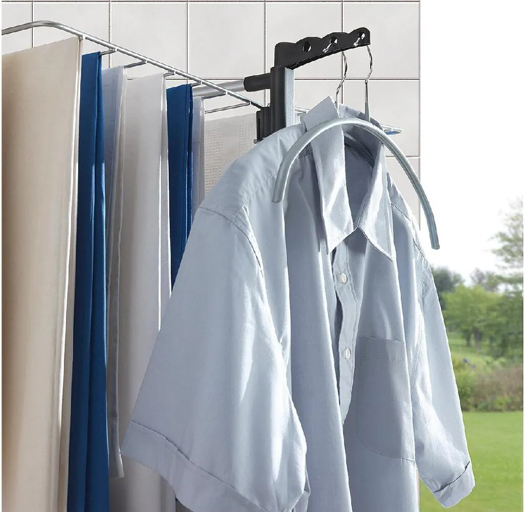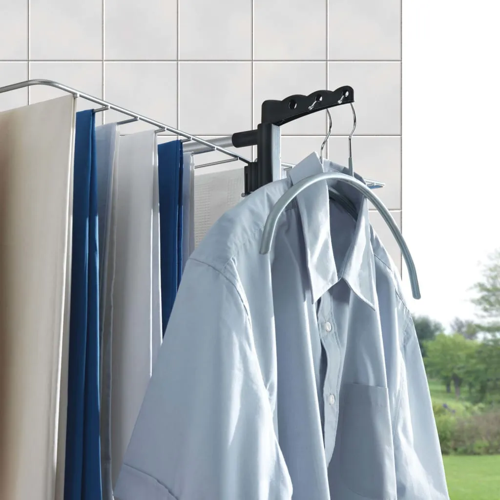 Außerdem gibt es zwei zusätzliche Halterungen für Kleiderbügel. So können auch Hemden oder Blusen ideal getrocknet werden.