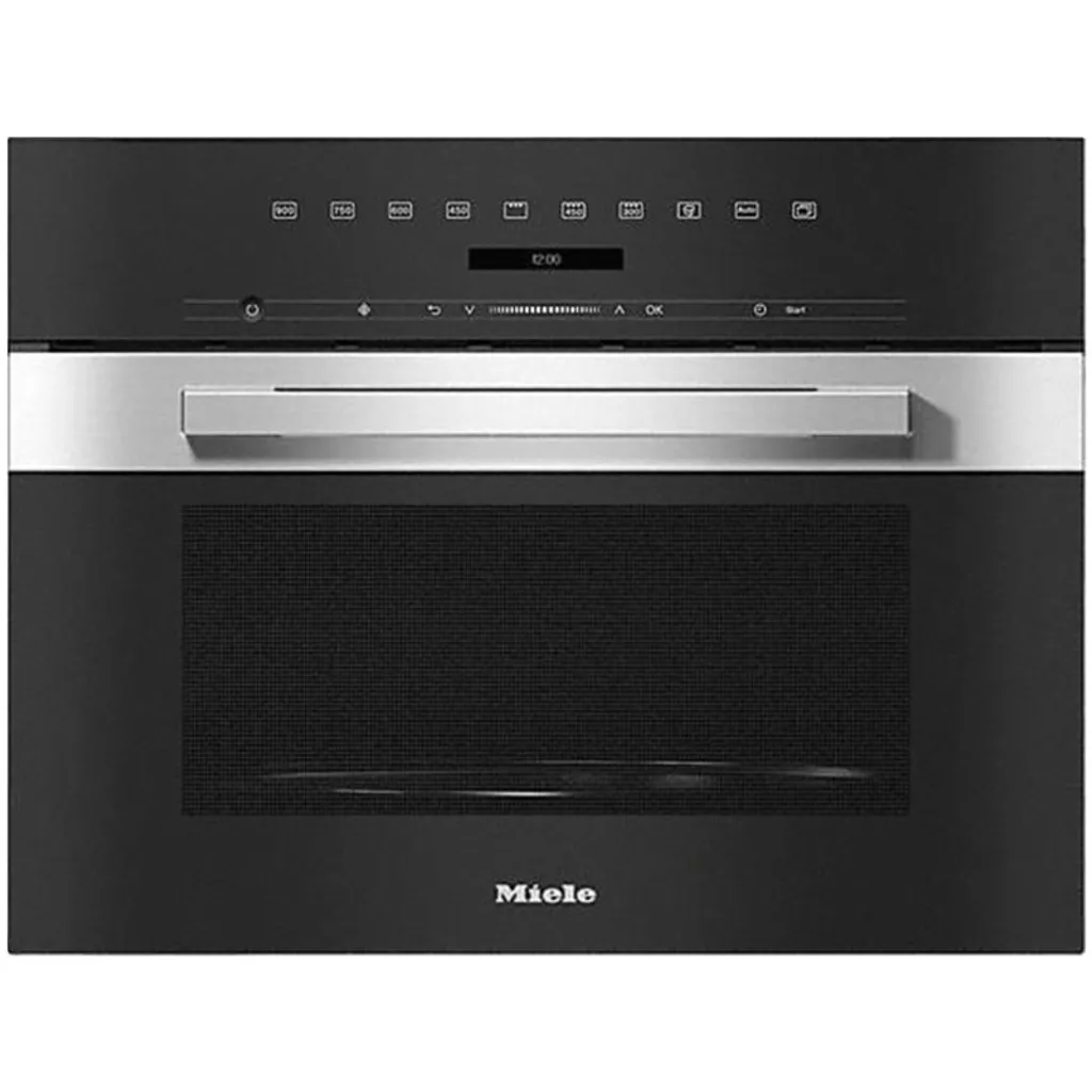 Miele Einbau-Mikrowelle M 7244 TC Edelstahl CleanSteel Bauform und Design Einbau-Mikrowellengerät PureLine TopControl Gerätefarbe: Edelstahl/CleanSteel Grifffarbe: Edelstahl/CleanSteel Genussvorteile Warmhalten Quarzgrill Betriebsarten Automatikprogramme Solo-Betrieb Mikrowelle Kombinationsbetrieb Mikrowelle mit Grill Bedienkomfort Display: DirectSensor S SoftOpen SoftClose MultiLingua Popcorn-Funktion Tageszeitanzeige Kurzzeitwecker Programmierung Garzeitende Programmierung Garzeitdauer Quick-Mikrowelle Individuelle Einstellungen Pflegekomfort Edelstahl-Front mit CleanSteel-Oberfläche Edelstahl-Garraum CleanGlass-Tür Sicherheit Gerätekühlsystem mit kühler Front Inbetriebnahmesperre Sicherheitsschalter Sicherheitssperre „Door“-Hinweis Technische Daten Garraumvolumen in l: 46 Türanschlag: unten Garraumbeleuchtung: 1 LED-Spot Garraumhöhe in cm: 23,2 Durchmesser des Drehtellers in cm: 40,6 Elektronisch gesteuerte Mikrowellenleistung Mikrowellenleistungsstufen in W:…