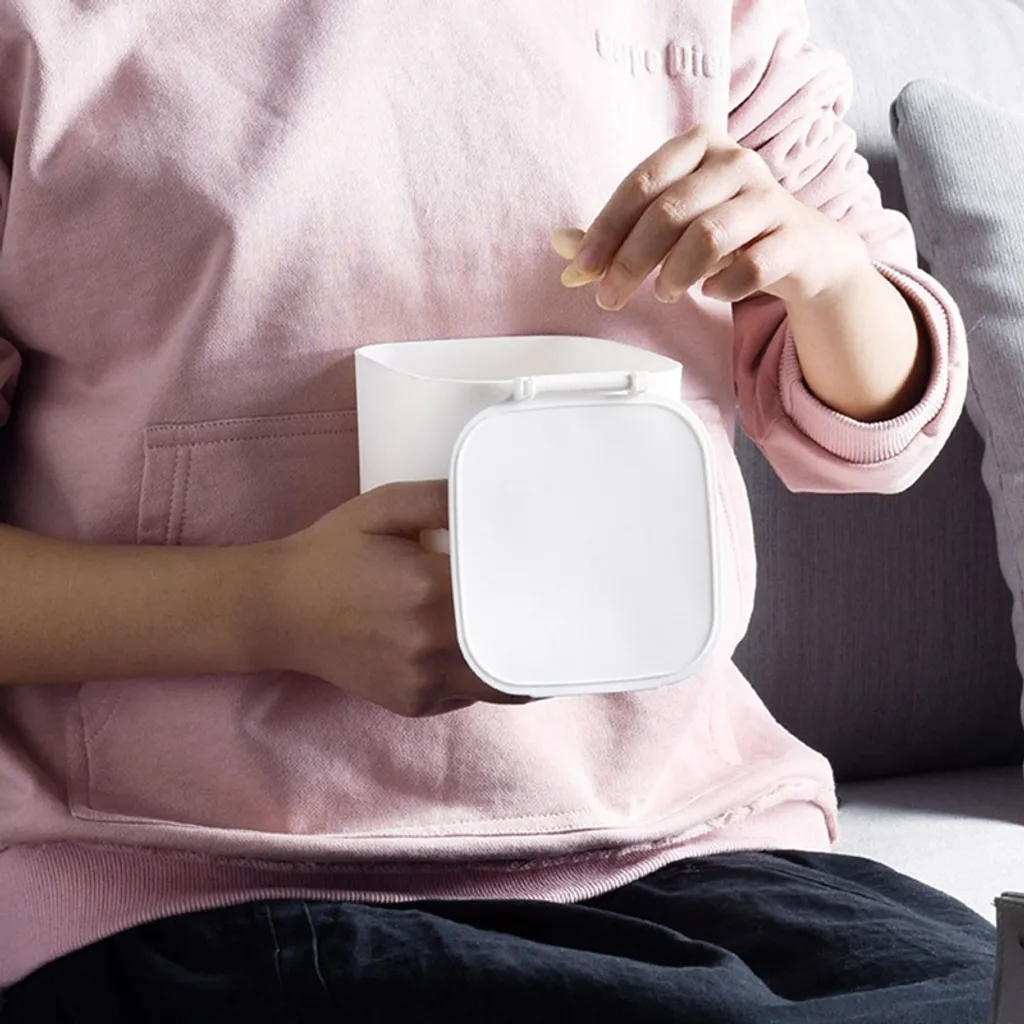 Mini Desktop Mülleimer Mit Deckel Clamshell Papierkorb Lagereimer Abfalleimer Weiß