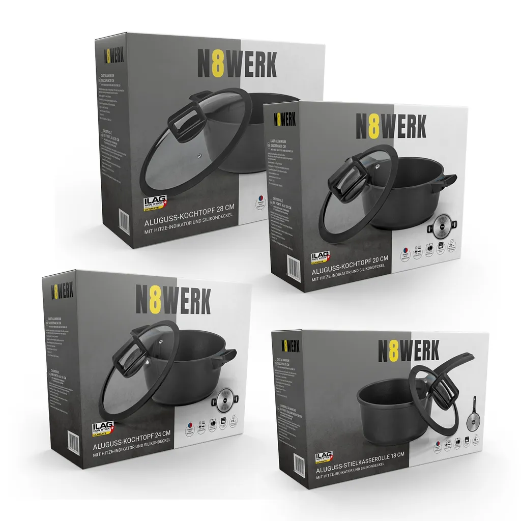 Einfach. Genau. Auf den Punkt. Das N8WERK Aluguss-Topf-Set mit N8WERK Heat Indicator.