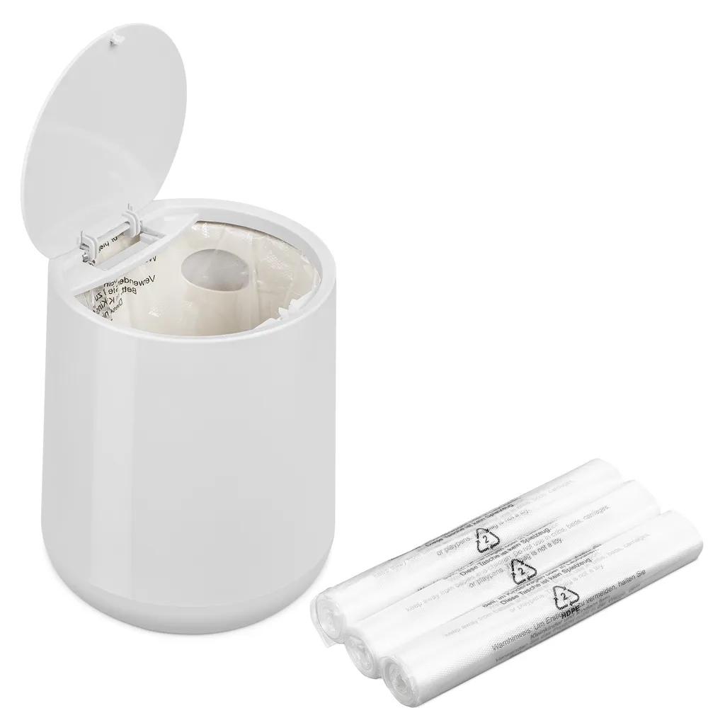 - PRODUKTDETAILS: 1x Tischabfalleimer inkl. 3x Rollen mit je 20 Müllbeuteln / Material: Kunststoff / Maße: 13,2 x 13,2 x 17 cm
